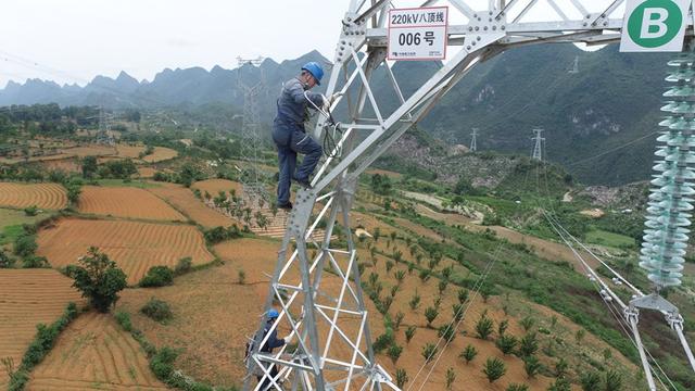 安順供電局輸電管理二所工作人員對(duì)220千伏八頂線進(jìn)行驗(yàn)收。倪純攝