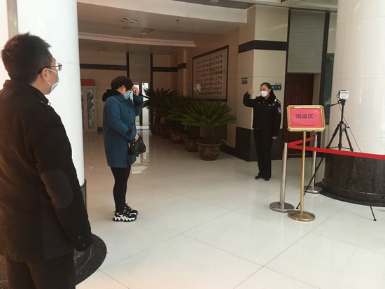 這是新冠肺炎疫情期間,在國網(wǎng)甘肅劉家峽水電廠辦公樓,該廠保衛(wèi)人員佟麗鑫耐心細致地進行辦公樓進出管理工作。
