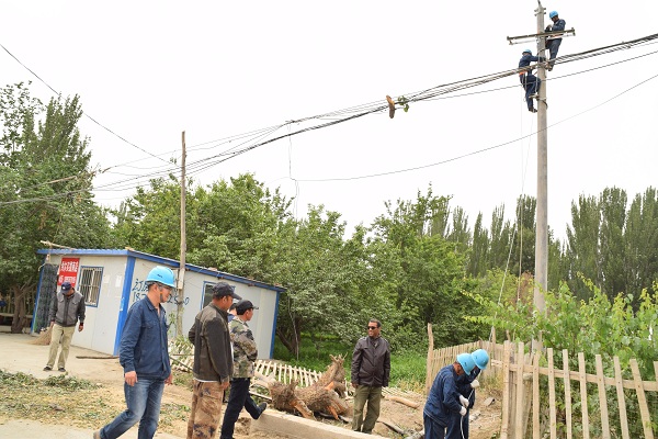 2019年8月15日傍晚,阿克蘇片區(qū)的上空陰暗無比,霎時間狂風四起,卷積著烏云籠罩了整座城市。瞬時風力達到9級以上,電力線路迎來了一次巨大的考驗,惡劣天氣導致沙井子片區(qū)多條路故障停電。陳亮接到指令,立即啟動應(yīng)急搶修預案,連夜頂著狂風暴雨奔赴一線,一切為的只有兩個字:搶修!經(jīng)過長達15個小時晝夜不歇的高強度連續(xù)作業(yè),沙井子片區(qū)所有故障線路全部恢復供電!然而在這背后,是陳亮帶領(lǐng)工人們15個小時的奮戰(zhàn)!
