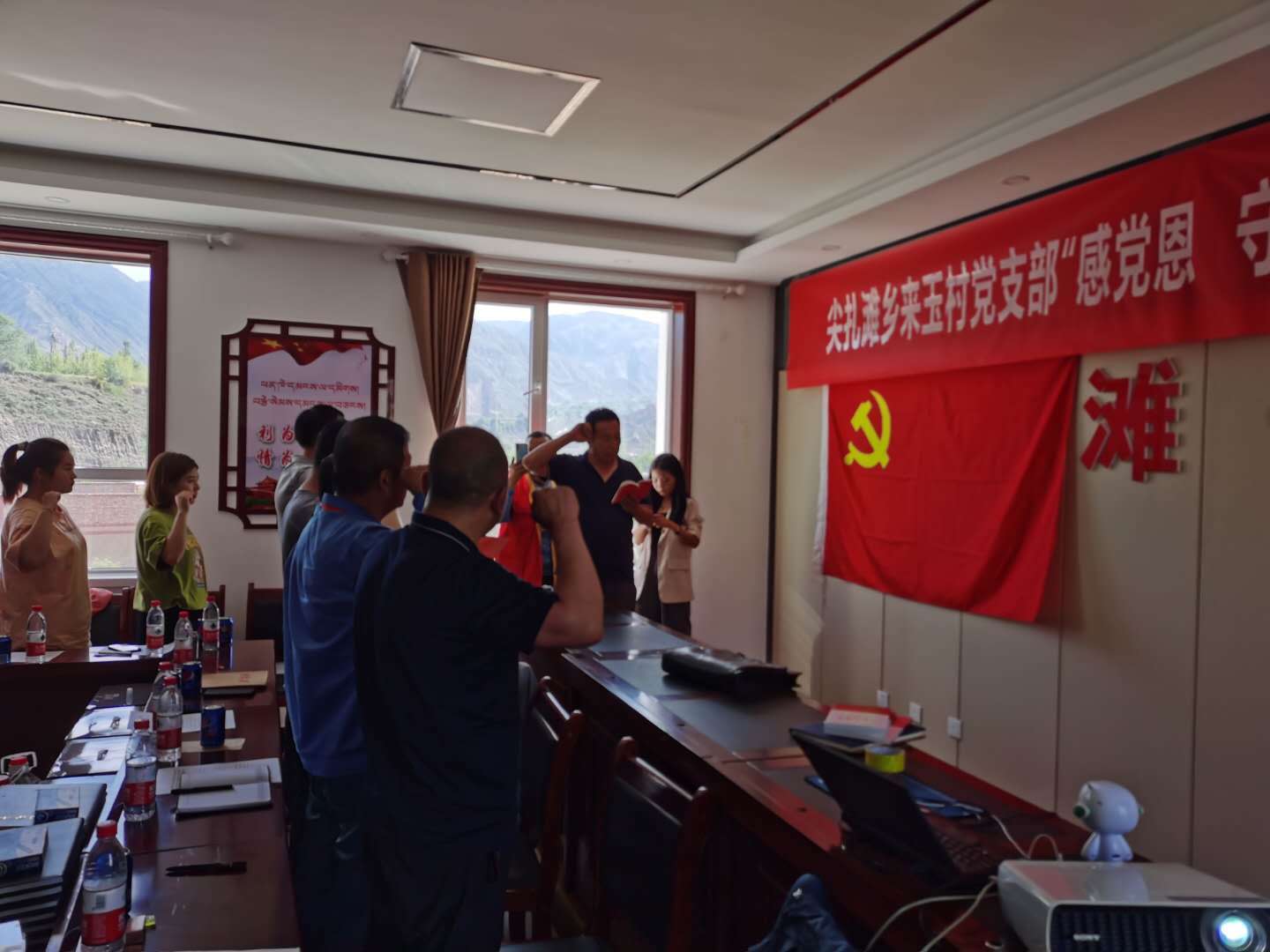 在尖扎來(lái)玉村黨員活動(dòng)室內(nèi),兩支部全體黨員在來(lái)玉村黨支部才讓加書(shū)記帶領(lǐng)下,面對(duì)黨旗,高舉右拳,用藏語(yǔ)和漢語(yǔ)兩種語(yǔ)言重溫入黨誓詞。雖然語(yǔ)言不同,但是每名黨員口中喊出的錚錚誓言,字字句句,神圣而豪邁,依舊強(qiáng)烈震撼著每一位黨員的心,更加堅(jiān)定了大家“對(duì)黨忠誠(chéng),積極工作,為共產(chǎn)主義奮斗終身”的理想信念。宣誓結(jié)束后,兩支部全體黨員、認(rèn)真觀看了愛(ài)國(guó)主義紀(jì)錄片《紅色氣質(zhì)》,通過(guò)紀(jì)錄片的介紹,使全體黨員進(jìn)一步了解了黨99年的光輝歷程,同時(shí)珍惜得來(lái)不易的和平、幸福的生活。紀(jì)念這段歷史是為了讓廣大黨員知道今天的幸福生活來(lái)之不易,為了明天的美好生活,作為新時(shí)代的黨員還需加倍努力。