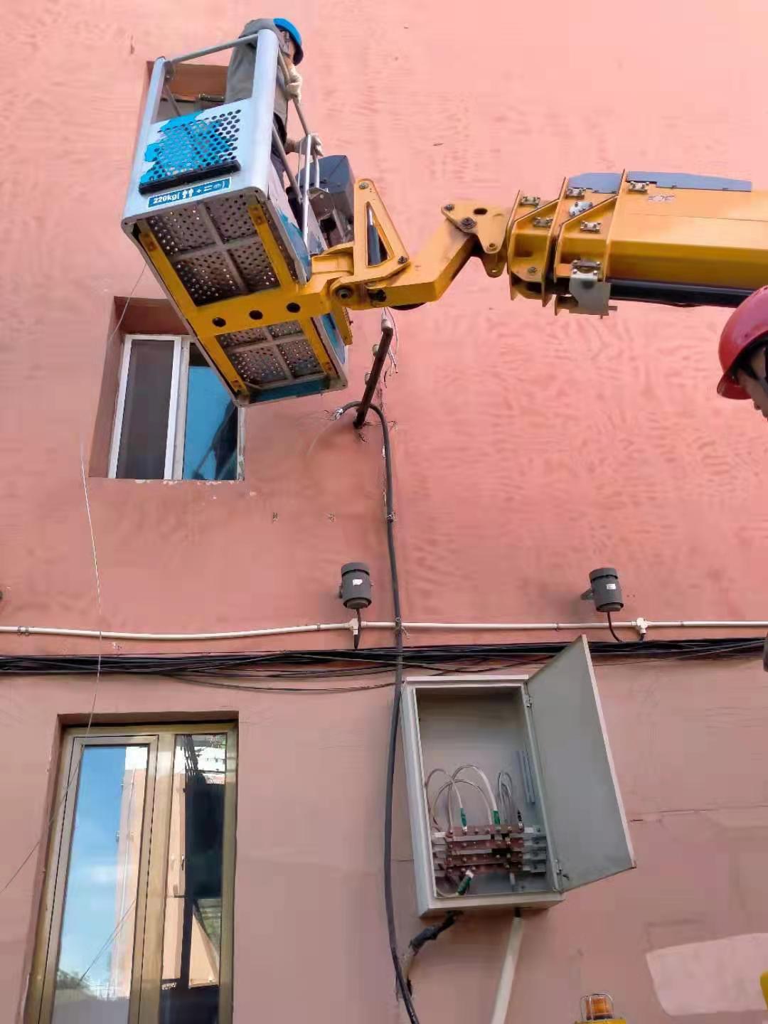 此外,通過排查發(fā)現(xiàn)該小區(qū)外墻低壓線也存在安全隱患,急修人員將這一情況反饋到分局。為了從根源上解決居民用電難題,分局決定對2號樓的進(jìn)線及外墻低壓線進(jìn)行整體更換,以滿足居民負(fù)荷需求。隨即分局安排登高車到現(xiàn)場,并組織檢修人員立即投入現(xiàn)場搶修工作,經(jīng)過三個小時廢寢忘食的搶修,徹底解決了用戶用電安全隱患。