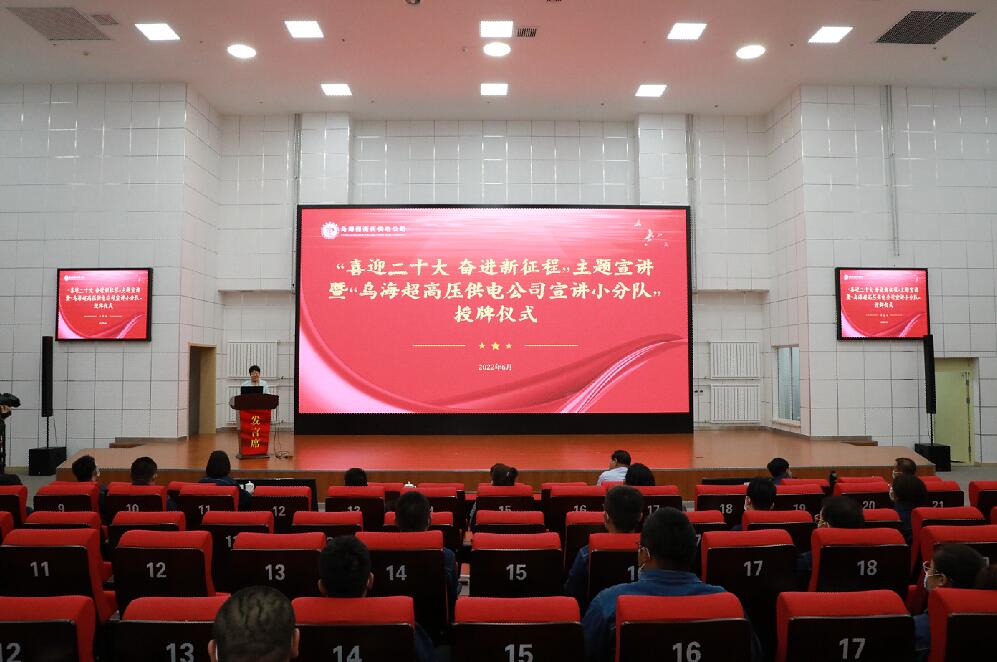 中國(guó)電力網(wǎng)訊 為深入宣傳貫徹好習(xí)近平新時(shí)代中國(guó)特色社會(huì)主義思想,持續(xù)加強(qiáng)新時(shí)代黨的創(chuàng)新理論宣傳普及工作,推動(dòng)宣講隊(duì)伍建設(shè),讓黨的創(chuàng)新理論“飛入尋常百姓家”,喜迎二十大的召開(kāi)。6月9日,烏海超高壓供電公司舉行“喜迎二十大 奮進(jìn)新征程”主題宣講活動(dòng)暨“烏海超高壓供電公司宣講小分隊(duì)”授牌儀式。烏海市委宣傳部相關(guān)領(lǐng)導(dǎo)為宣講小分隊(duì)授牌。