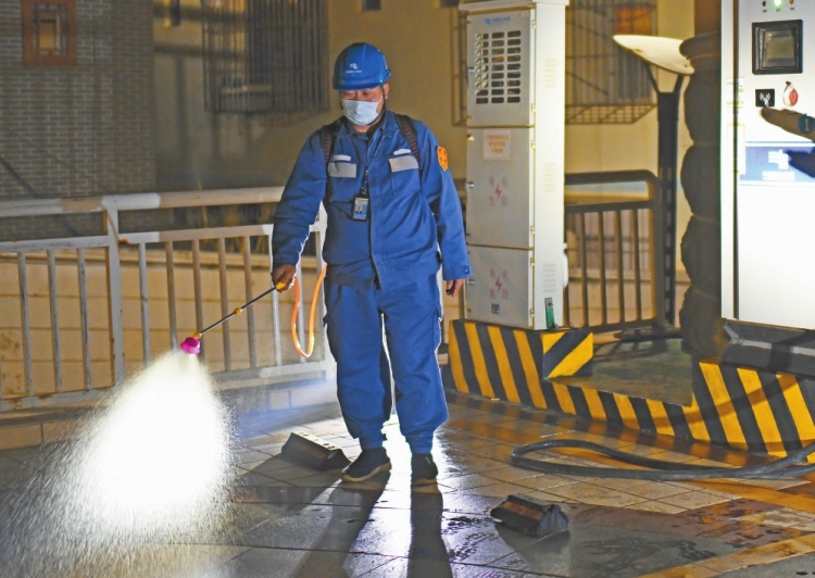 從2月2日晚上開始,廣西電網(wǎng)公司南寧邕寧供電局黨員服務(wù)隊(duì)每天組織3名黨員,在23時(shí)后對(duì)供電區(qū)域內(nèi)的電動(dòng)汽車充電站進(jìn)行全面消毒,減少對(duì)用戶的影響,確保充電環(huán)境安全。馬華斌 攝