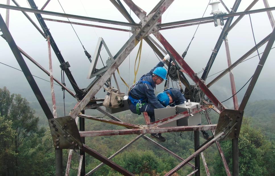 11月29日,南方電網(wǎng)廣西桂林供電局輸電管理所工作人員對220千伏如沙線116號塔進行覆冰預警裝置維護工作。