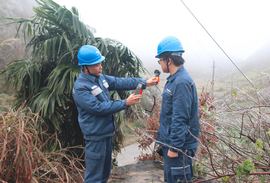 在廣西桂林,寒潮前鋒剛剛抵達,位于桂林靈川縣海洋鎮(zhèn)帽子嶺的500千伏桂山乙線,周邊氣溫就從25℃驟降到10℃以下。超高壓公司柳州局作業(yè)人員唐瑞焱介紹,“這條線路往年受冰雪凝凍天氣影響很大,我們現(xiàn)在正在開展線路覆冰前的檢修工作。”