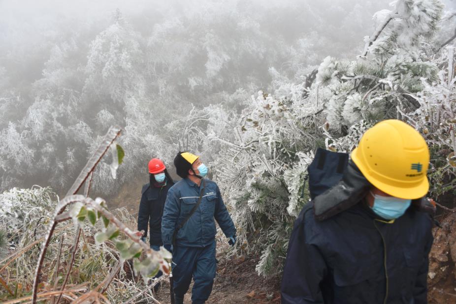 11月30日,南方電網(wǎng)廣東韶關供電局的工作人員開展覆冰前線路特巡。