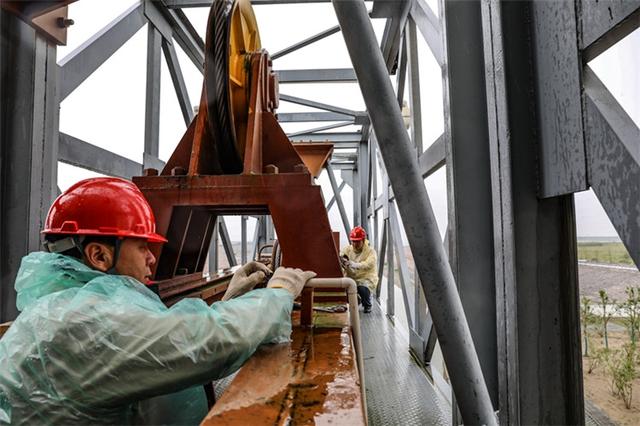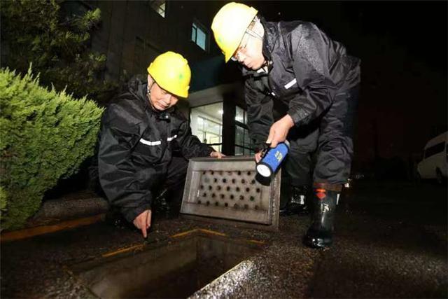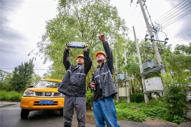 國(guó)網(wǎng)江蘇南通供電公司員工冒雨檢查閘口用電設(shè)備,確保安全運(yùn)行。