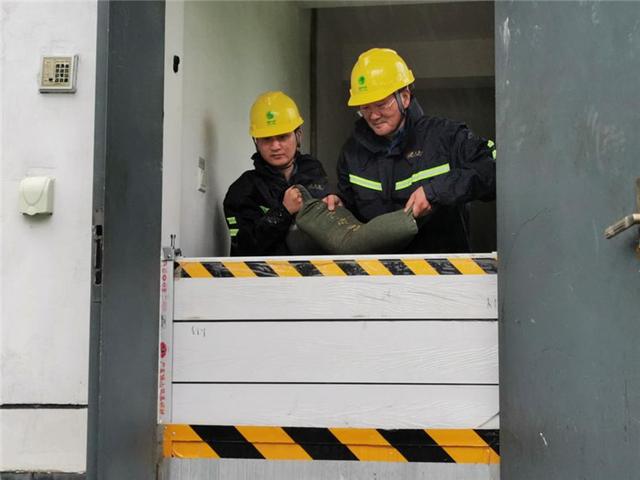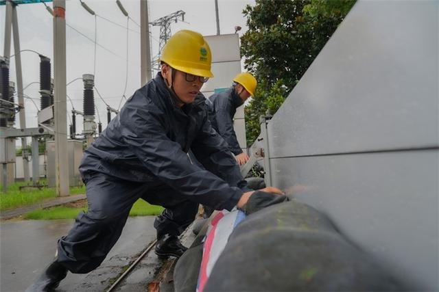 國(guó)網(wǎng)安徽安慶岳西縣供電公司員工裝沙袋加固城西變電站圍墻,防范臺(tái)風(fēng)影響變電站設(shè)備安全運(yùn)行。