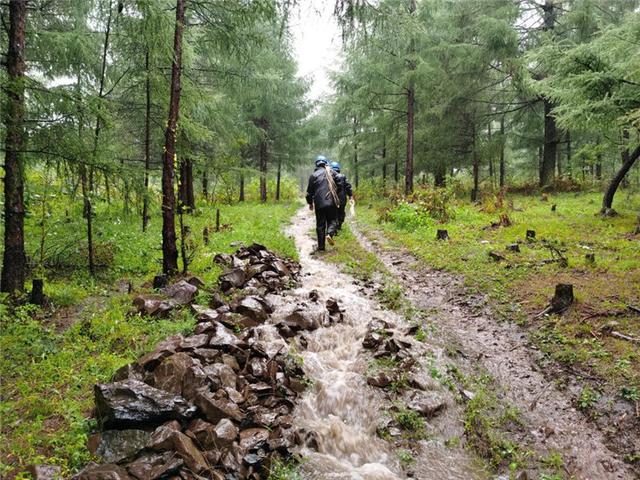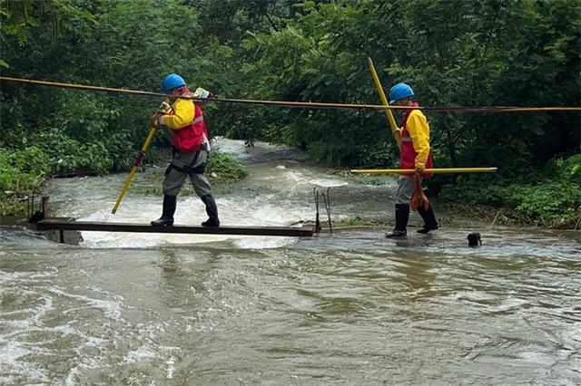 國(guó)網(wǎng)吉林送變電公司員工冒雨巡護(hù)山區(qū)線路。