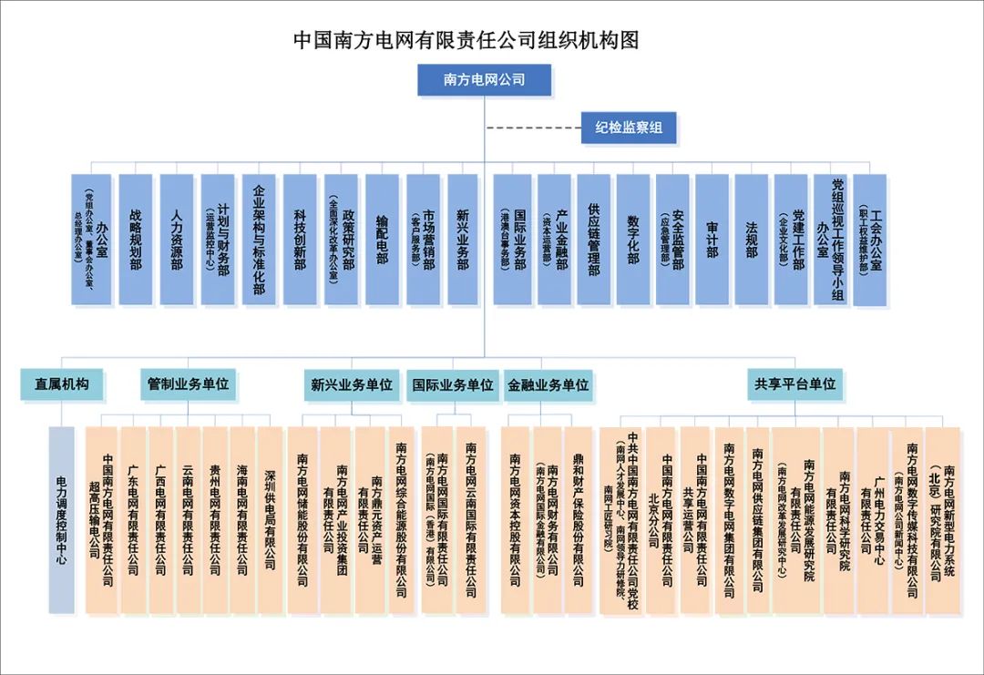 南方電網(wǎng)公司組織架構(gòu):