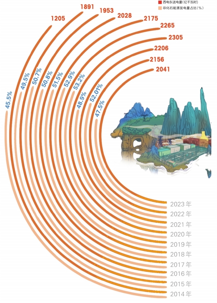 2014—2023年,南方五省區(qū)非化石能源發(fā)電量增長4272億千瓦時(shí),達(dá)到7685億千瓦,年平均增長率達(dá)到9%,發(fā)電量占比增長到48%,高于全國平均水平13.7個(gè)百分點(diǎn)。南方電網(wǎng)系統(tǒng)調(diào)節(jié)能力顯著提升,為能源結(jié)構(gòu)綠色低碳轉(zhuǎn)型奠定堅(jiān)實(shí)基礎(chǔ)。