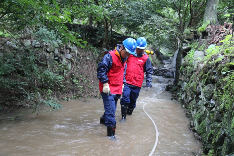 國網(wǎng)重慶開州供電公司員工蹚水前往巫山鎮(zhèn)處理10千伏鐵上線故障。