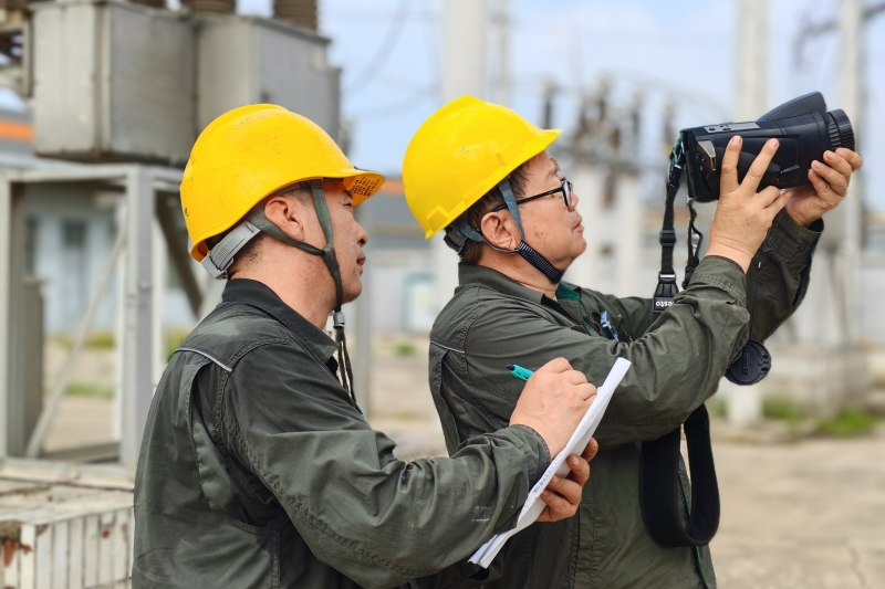 國網(wǎng)河北邢臺(tái)供電公司員工在35千伏華龍站進(jìn)行巡檢測溫。