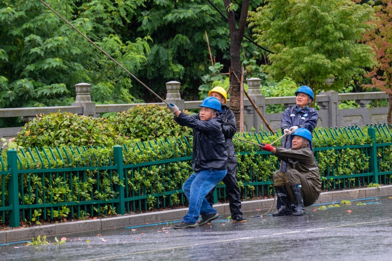 國網(wǎng)陜西商洛柞水縣供電公司員工冒雨搶修營湖小區(qū)臺(tái)區(qū)。