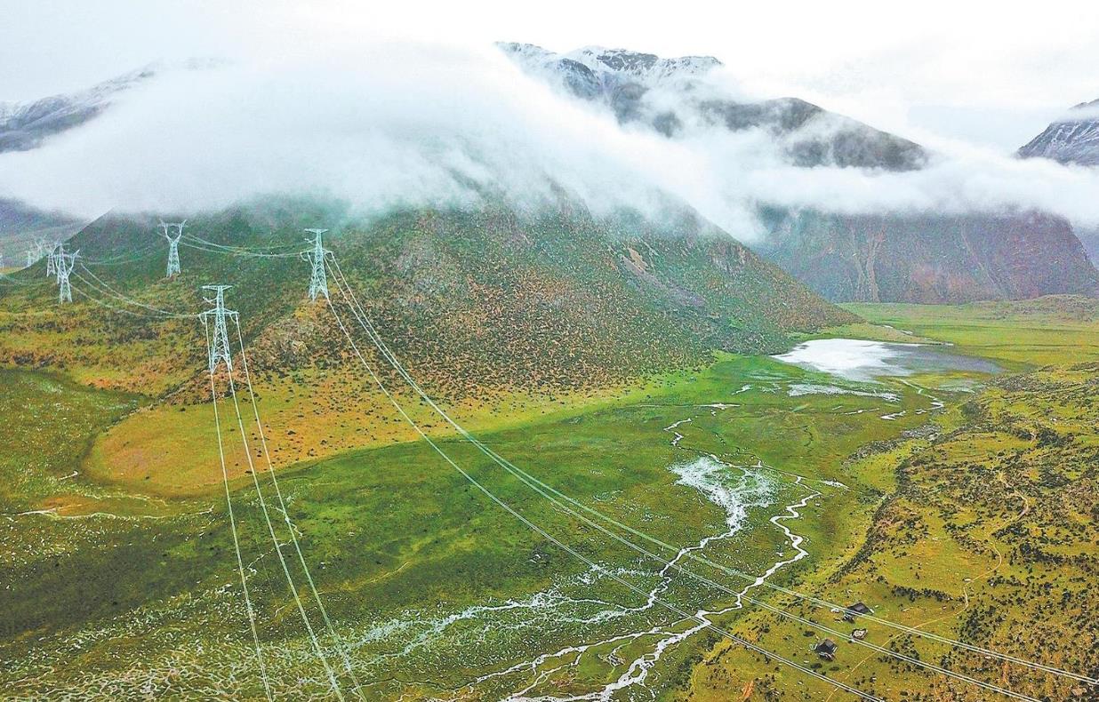 座座鐵塔矗立云端,條條銀線跨越山巒,記錄著雪域高原的變化。