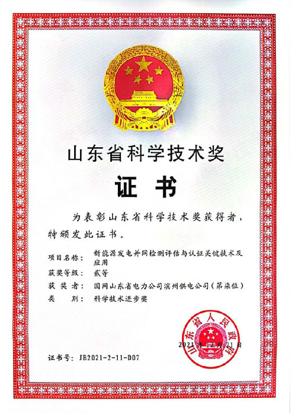 本網(wǎng)訊 7月1日,筆者從《山東省人民政府關(guān)于2021年度山東省科學(xué)技術(shù)獎勵的決定》上了解到,濱州公司參與申報的《新能源發(fā)電并網(wǎng)檢測評估與認證關(guān)鍵技術(shù)研究及應(yīng)用》項目榮獲2021年度山東省科學(xué)技術(shù)獎科技進步二等獎。這是濱州公司首次獲得山東省科學(xué)技術(shù)獎。