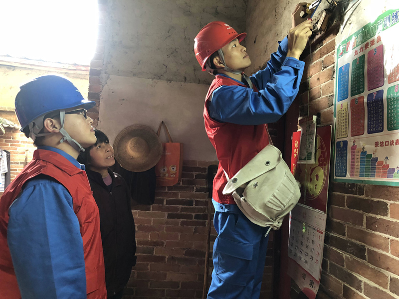 南方電網(wǎng)“高鋒愛心供電服務(wù)隊(duì)”志愿者為小婷家檢查用電設(shè)備。林丹丹 攝