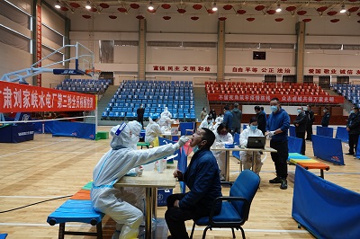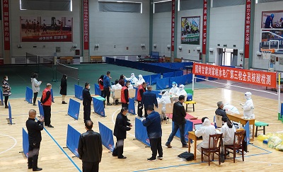 早上8時(shí)起,該廠體育館里工作人員、醫(yī)護(hù)人員和志愿者紛紛忙碌起來(lái),布置采樣桌,擺放電腦,連接網(wǎng)線,檢測(cè)區(qū)域設(shè)置一米間隔。體育館外,等待檢測(cè)的人員攜帶工作證、身份證排隊(duì),由該廠黨員干部、志愿者組成的引導(dǎo)人員在現(xiàn)場(chǎng)維持秩序,提醒待檢測(cè)人員注意間隔、避免扎堆。9時(shí)起,檢測(cè)工作正式開始,志愿者引導(dǎo)待檢人員分組進(jìn)入檢測(cè)現(xiàn)場(chǎng)、有序進(jìn)行登記,醫(yī)護(hù)人員“全副武裝”,身著防護(hù)服、護(hù)面罩,為大家采集咽拭子。檢測(cè)現(xiàn)場(chǎng)設(shè)置十分合理,大家都站在一米間隔線上,隊(duì)伍有序順暢,檢測(cè)速度大幅提升。
