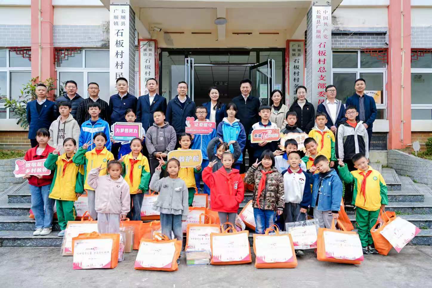 慰問環(huán)節(jié)中,李文華為鄉(xiāng)村教師送上愛心體檢卡,武琳向石板村黨支部捐贈空調(diào)和辦公電腦,與會代表共同為24名留守兒童代表送上羽絨服、文具套裝、課外讀物等學(xué)習(xí)生活用品。隨后,石板村向公司贈送錦旗,以此表達(dá)對公司持續(xù)幫扶的誠摯謝意。