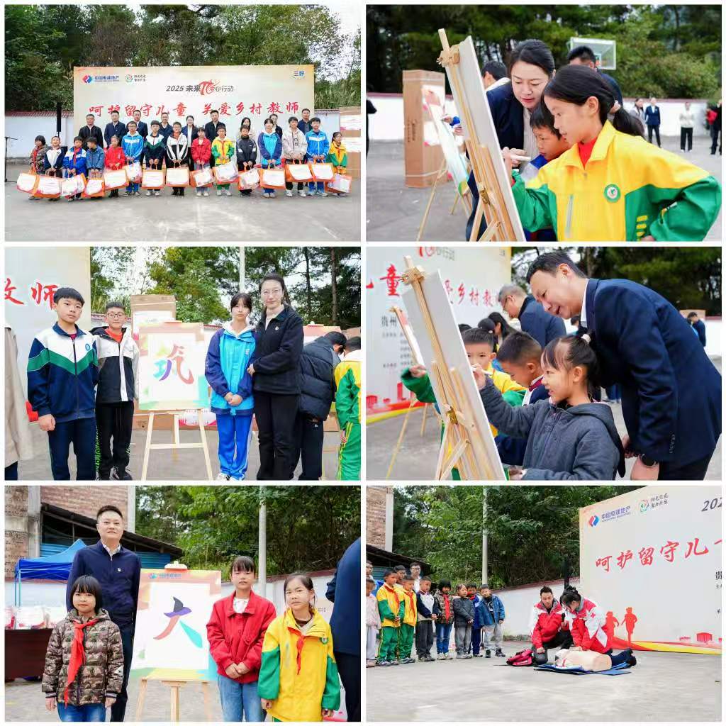 本次活動從“安全守護(hù)、物資幫扶、陣地升級”三個維度為石板村提供全方位關(guān)愛。貴州省紅十字會資深老師受邀為留守兒童開展“防溺水與應(yīng)急包扎”安全教育課,通過理論講解與實(shí)際操作,幫助孩子們掌握實(shí)用的安全防護(hù)技能。在互動環(huán)節(jié),領(lǐng)導(dǎo)和孩子們共同參與“大國基建 為民筑城”主題背景板涂色創(chuàng)作,用色彩傳遞守護(hù)與溫暖,并在協(xié)作中理解公益內(nèi)涵。
