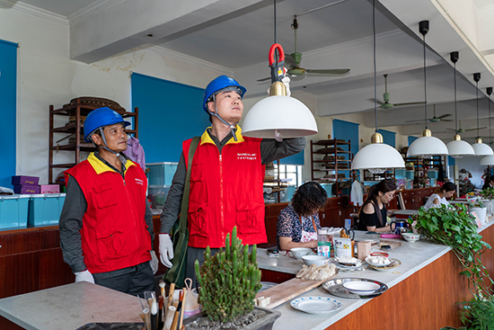 當(dāng)天,紅船共產(chǎn)黨員服務(wù)隊(duì)隊(duì)員走進(jìn)善璉湖筆廠裝套、梳毛等生產(chǎn)車間,對(duì)內(nèi)部電氣主接線、高低壓設(shè)備、應(yīng)急電源燈和用電工器具等關(guān)鍵設(shè)備進(jìn)行安全排查,幫助糾正不安全用電行為,督促用戶及時(shí)整改。在中國(guó)湖筆文化館內(nèi),他們仔細(xì)檢查配電箱及低壓線路,對(duì)內(nèi)部線路老化破損、插座開(kāi)關(guān)接觸不良等問(wèn)題進(jìn)行消缺處理,并對(duì)警示標(biāo)志等進(jìn)行規(guī)范整頓,精心營(yíng)造安全用電環(huán)境。