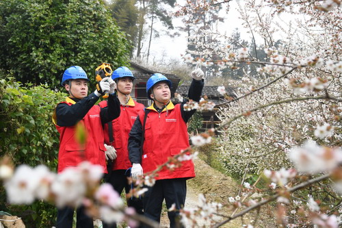 踏上蜿蜒的小路,穿過層層梅花林,國(guó)網(wǎng)福州供電公司共產(chǎn)黨員服務(wù)隊(duì)隊(duì)員們正輕車熟路地沿著高空銀線查看線路走廊,并對(duì)線路進(jìn)行日常的巡視測(cè)溫,以確保村落的供電可靠性,保障村民的生活用電需求。“我們?cè)谘惨曔^程中會(huì)重點(diǎn)防范鳥害和樹線矛盾帶來的季節(jié)性安全隱患。”隊(duì)員王蘇宇介紹道。
