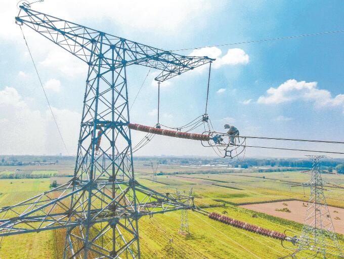 國網(wǎng)河南超高壓公司員工開展帶電作業(yè),保障可靠供電。段家順 攝