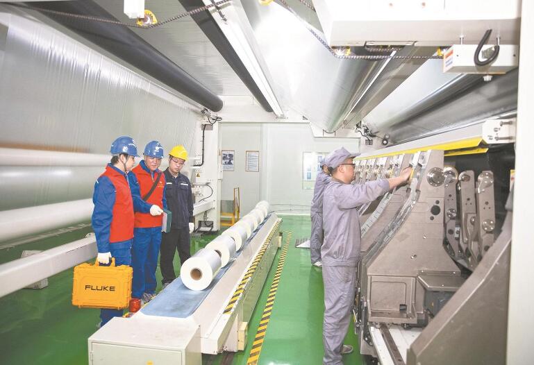 綿陽供電公司員工在四川東材科技集團股份有限公司為企業(yè)排查生產(chǎn)線用電安全隱患。田海 攝