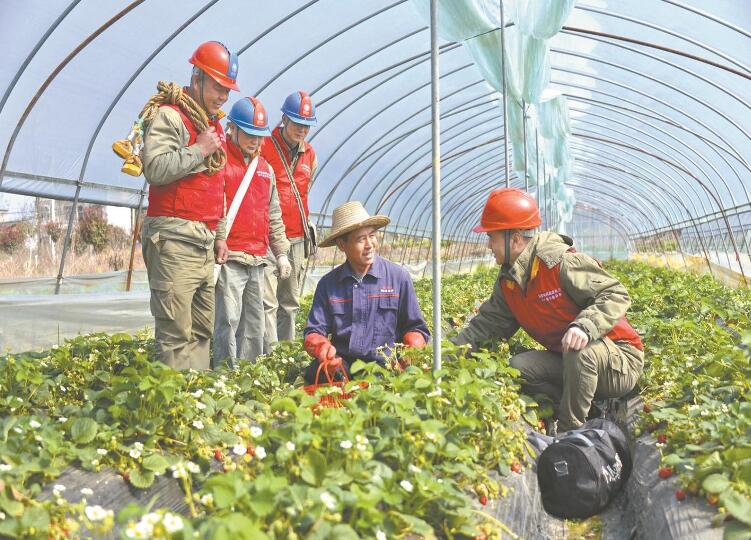 黨員供電網(wǎng)格員來到赤壁市官塘驛鎮(zhèn),向草莓種植戶了解用電需求。 畢紅續(xù) 攝