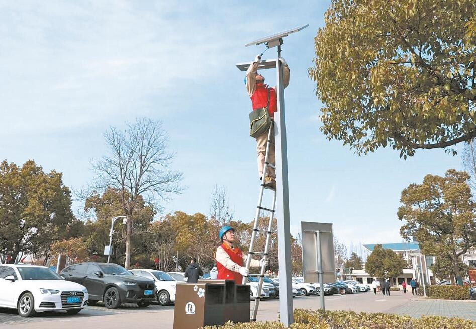 黨員服務(wù)隊隊員來到位于淮安市淮安區(qū)的周恩來紀(jì)念館,檢修停車場的光伏路燈。