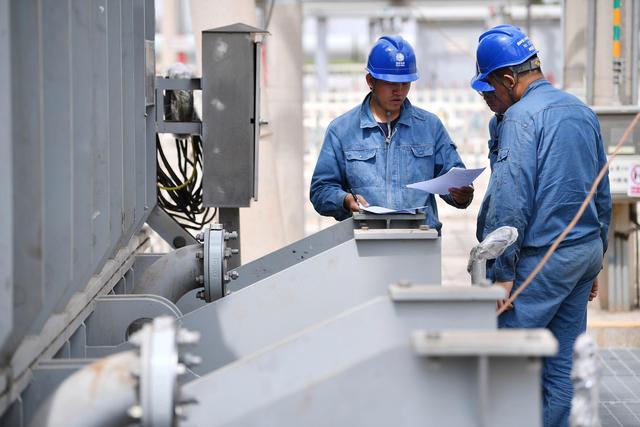 5月27日,電力工人在工程現(xiàn)場進(jìn)行檢修作業(yè)。