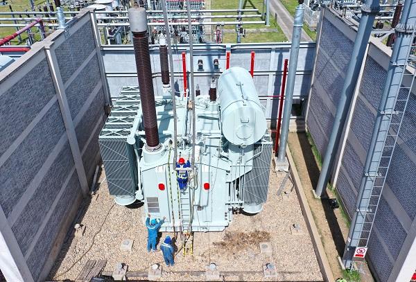 圖說:500千伏三林變電站4號主變C相本體成功完成調(diào)換并恢復供電 采訪對象供圖(下同)