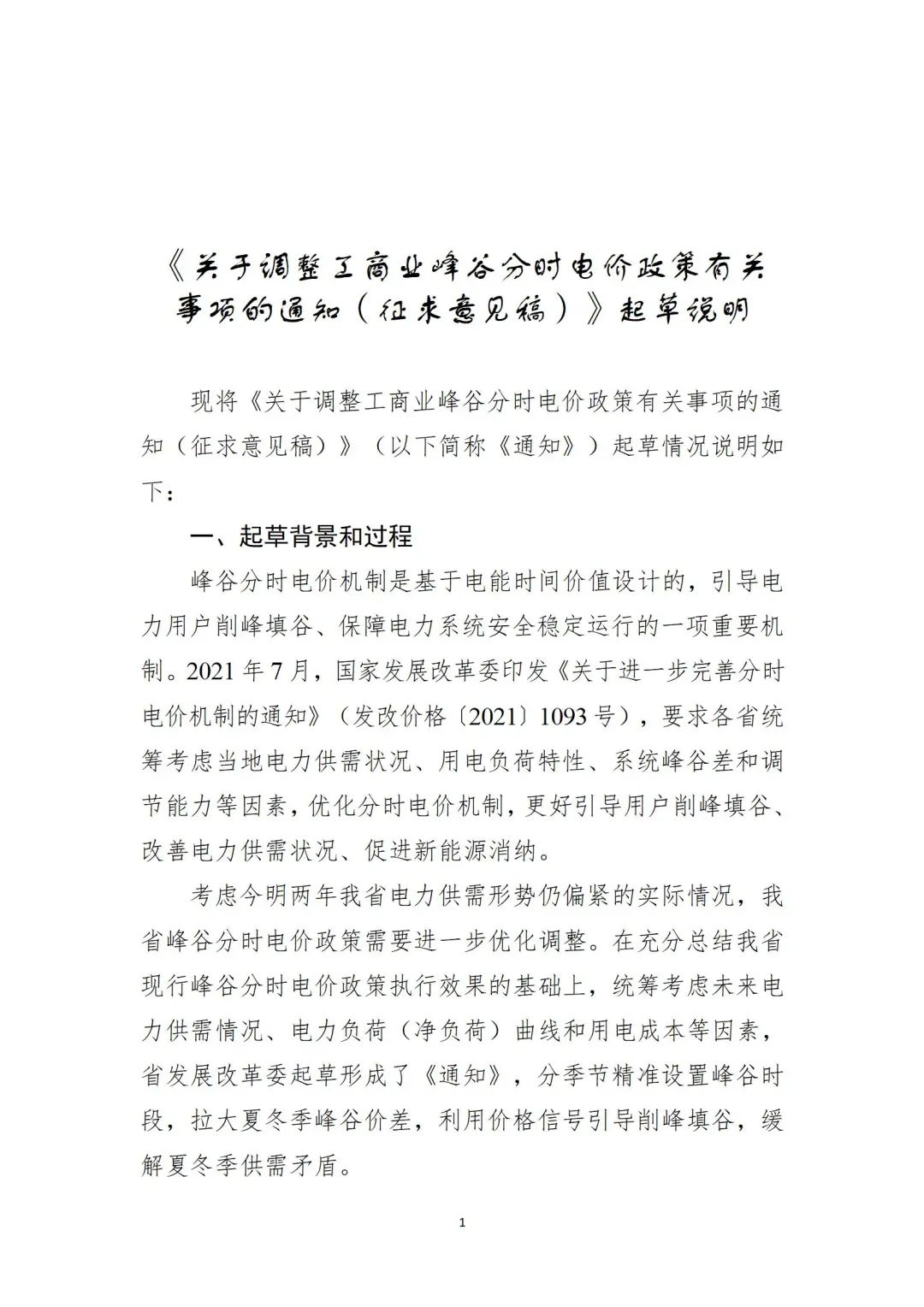 2.《關于調(diào)整工商業(yè)峰谷分時電價政策有關事項的通知(征求意見稿)》起草說明