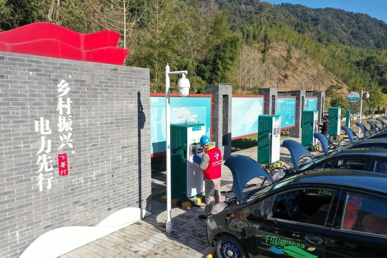 供電員工在杭州市下姜村檢查電動(dòng)汽車(chē)充電設(shè)施