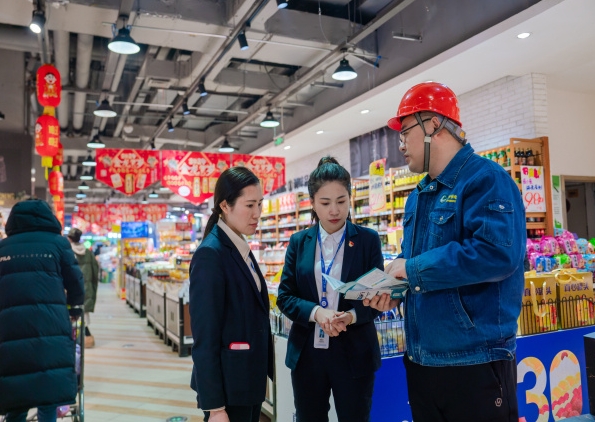1月29日,國網(wǎng)四平供電公司專業(yè)人員在進前佳超市為工作人員普及用電安全知識。
