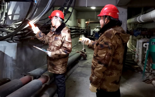 1月30日,國網(wǎng)白山供電公司員工在白山市福利院檢查地源熱泵安全用電情況。