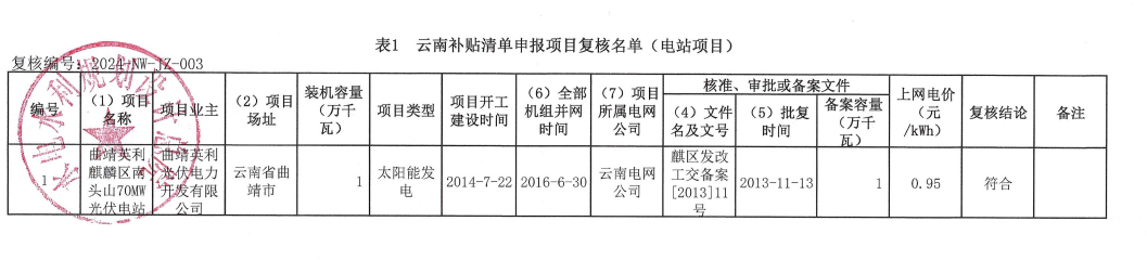 根據(jù)《財政部辦公廳關于開展可再生能源發(fā)電補貼項目清單審核有關工作的通知》(財辦建〔2020〕6號)和《國家可再生能源信息管理中心關于可再生能源發(fā)電補貼項目清單申報與審核工作有關要求的公告》等文件要求,相關可再生能源發(fā)電企業(yè)對滿足條件的可再生能源發(fā)電項目進行補貼清單申報,經云南電網初審、云南省能源局審核確認、國家可再生能源信息管理中心復核。現(xiàn)將國家可再生能源信息管理中心復核通過的云南補貼清單申報項目復核名單(電站項目)予以公示。