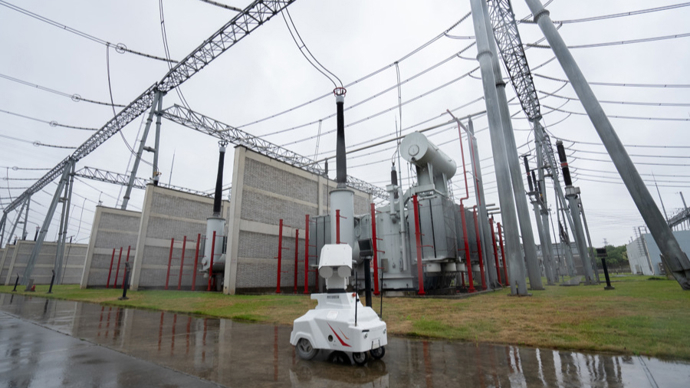 “剩下的就交給我們的智能巡視系統(tǒng)吧。”楊鑫在主控室后臺點擊下達聯(lián)合巡檢任務,系統(tǒng)界面隨即傳來智能裝備的實時巡視畫面。在戶外設備區(qū),一臺智能巡檢機器人從“充電小屋”中駛出,按照設定好的路線對主變壓器、斷路器、隔離開關等設備進行紅外測溫。而在500千伏GIS室內(nèi),一架搭載高清視頻探頭的無人機騰空而起,平穩(wěn)地對GIS設備的各類表計進行檢查抄錄,與此同時,運維人員還能通過安裝在各個設備區(qū)的高清攝像頭實時檢查設備運行狀況。