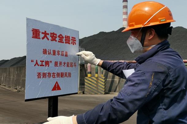 中國電力網(wǎng)訊  近日,國家能源集團(tuán)豐城發(fā)電公司儲(chǔ)運(yùn)部機(jī)務(wù)檢修班利用卸煤溝暫時(shí)停卸時(shí)間,在待卸位和卸車位各加裝一塊安全提示牌,通過“可視化”手段,提醒煤車司機(jī)規(guī)范操作,確保卸煤環(huán)節(jié)安全。