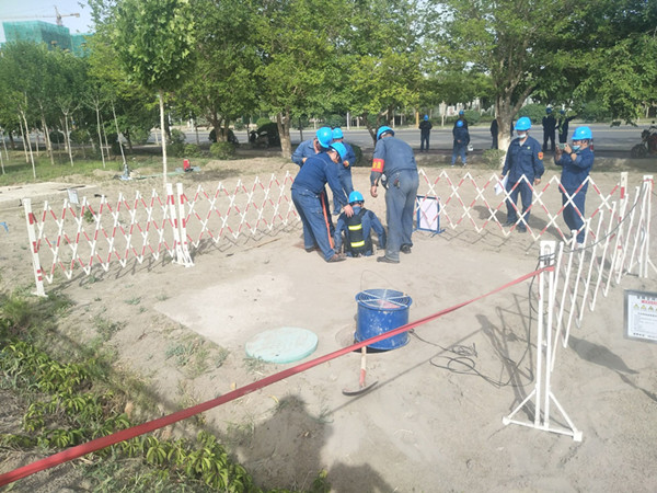 中國電力網(wǎng)訊 為了加強對有限空間作業(yè)的安全管理,更好地應對中毒、窒息、淹溺等突發(fā)受限空間安全事故發(fā)生,切實保護作業(yè)人員生命安全,6月10日,新疆兵團一師電力阿拉爾熱力分公司開展了一場有限空間應急演練活動。