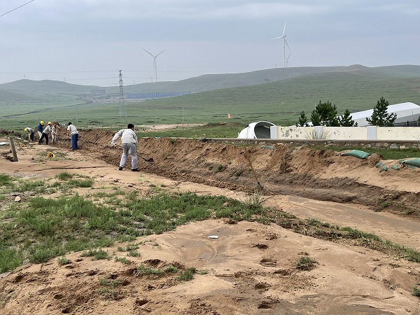 中國電力網(wǎng)訊 近期,連續(xù)幾場暴雨給防汛工作帶來很大壓力,大唐蒙中事業(yè)部立即組織各風(fēng)電場開展防汛專項檢查,組織員工對風(fēng)電場周圍泄洪通道進(jìn)行疏浚。