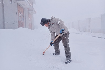 早上7點(diǎn)半,住在升壓站的生產(chǎn)準(zhǔn)備小組便已經(jīng)進(jìn)入室外設(shè)備區(qū)域進(jìn)行設(shè)備巡視和送出線路覆冰情況監(jiān)測,確保站內(nèi)設(shè)備運(yùn)行安全。同時清除站內(nèi)道路積雪,鋪好草墊,切實(shí)做好防滑措施。