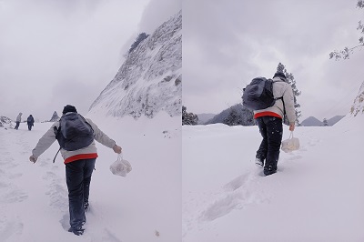 早上八點(diǎn),項(xiàng)目部范新樂、夏明興、生技部張平帶上給生產(chǎn)準(zhǔn)備小組的早餐,驅(qū)車到升壓站山腳下被厚雪陡坡阻礙了前行。三人提著早餐,沿著陡坡,艱難爬坡徒步1公里,將還帶余熱早餐送至生產(chǎn)準(zhǔn)備小組人員手中,又一起繼續(xù)忙碌著升壓站首批風(fēng)機(jī)并網(wǎng)準(zhǔn)備工作。
