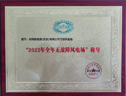 中國電力網(wǎng)訊(通訊員 王治卿) 金秋八月,捷報再傳。在控股、大區(qū)及公司黨委的堅強領(lǐng)導(dǎo)下, 8月24日,2022年全國無故障風(fēng)電場管理成果發(fā)布會上,萬順風(fēng)電場再獲“百日無故障風(fēng)電場”榮譽,系華潤電力首家連續(xù)三年獲此榮譽風(fēng)電場。