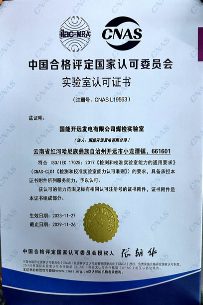 中國電力網(wǎng)訊 (通訊員 王如鵬)12月3日,國能開遠(yuǎn)公司收到中國合格評定國家認(rèn)可委員會(CNAS)授予的煤檢實驗室認(rèn)可證書,標(biāo)志著該公司可在認(rèn)可范圍內(nèi)使用CNAS國家實驗室認(rèn)可標(biāo)識和ILAC-MRA國際互認(rèn)聯(lián)合標(biāo)識,煤檢驗?zāi)芰_(dá)到國家級實驗室水平。