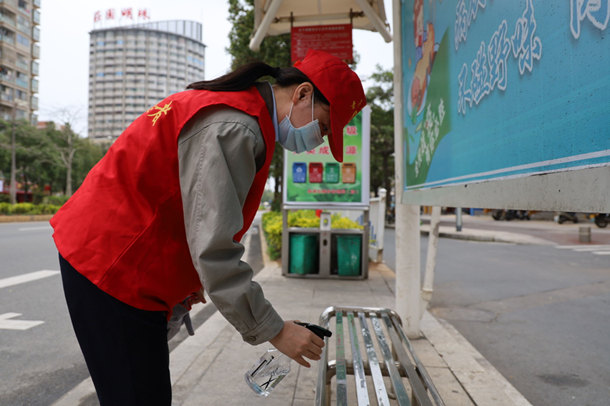 活動(dòng)中,志愿者兩兩一組,組成三支小隊(duì)。三支隊(duì)伍分工有序,分別開展了協(xié)助環(huán)衛(wèi)女工打掃街道、清掃公共區(qū)域地面及設(shè)施、消毒公交車站站牌和候車位等工作。活動(dòng)持續(xù)1個(gè)小時(shí),志愿者身體力行地參與到公共衛(wèi)生環(huán)境整治工作當(dāng)中,切身體會(huì)到環(huán)衛(wèi)工人的崗位艱辛,并表示會(huì)進(jìn)一步提升環(huán)保意識,積極向周邊家人同事傳導(dǎo)維護(hù)環(huán)境知識和理念,切實(shí)營造共創(chuàng)美好家園的氛圍。