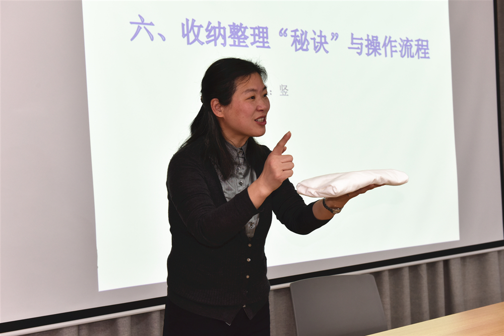 此次活動(dòng)邀請(qǐng)了高級(jí)整理收納師為大家分享了收納中需要遵守的“斷離舍”原則,從收納理念、收納工具的選擇到家居衣物的懸掛方式、衣物折疊法等方面著手,從理論到實(shí)操,寓教于樂(lè)、深入淺出,為大家?guī)?lái)了一堂有趣、實(shí)用的課程。培訓(xùn)后,參訓(xùn)職工分小組進(jìn)行了收納比賽,比賽過(guò)程中,選手們學(xué)以致用,揮灑自如、得心應(yīng)手,取得了優(yōu)異的成績(jī)。
