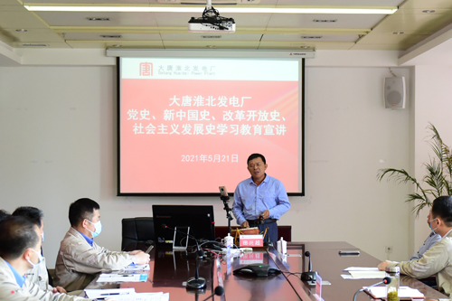 中國(guó)電力網(wǎng)訊 為深化“黨史、新中國(guó)史、改革開(kāi)放史和社會(huì)主義發(fā)展史”學(xué)習(xí)教育,推動(dòng)黨員干部學(xué)史明理、學(xué)史增信、學(xué)史崇德、學(xué)史力行,5月21日,大唐淮北發(fā)電廠邀請(qǐng)淮北市“四史”宣講團(tuán)走進(jìn)企業(yè),幫助教育引導(dǎo)黨員干部全面了解“四史”,學(xué)會(huì)歷史思維,培養(yǎng)歷史眼光,增強(qiáng)歷史擔(dān)當(dāng),進(jìn)一步堅(jiān)定理想信念,激發(fā)干事創(chuàng)業(yè)熱情。