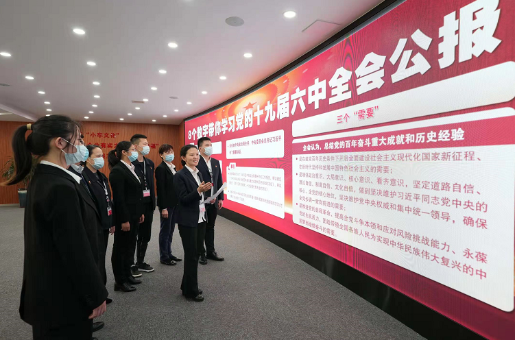 連日來,該公司通過網(wǎng)站、微信等載體,迅速采取專題會議、中心組理論學(xué)習(xí)、“三會一課”“大唐皖電黨員活動日”等方式,組織黨員干部收看中央新聞發(fā)布會直播、學(xué)習(xí)全會公報(bào)和《決議》,迅速掀起廣大干部職工學(xué)習(xí)宣傳貫徹全會精神的熱潮。系統(tǒng)各單位迅速反應(yīng),通過撰寫心得體會、特色黨課宣講、網(wǎng)絡(luò)知識問答、微視頻講解宣貫、數(shù)字公報(bào)解讀等創(chuàng)新方式增強(qiáng)對全會精神的理解和掌握。
