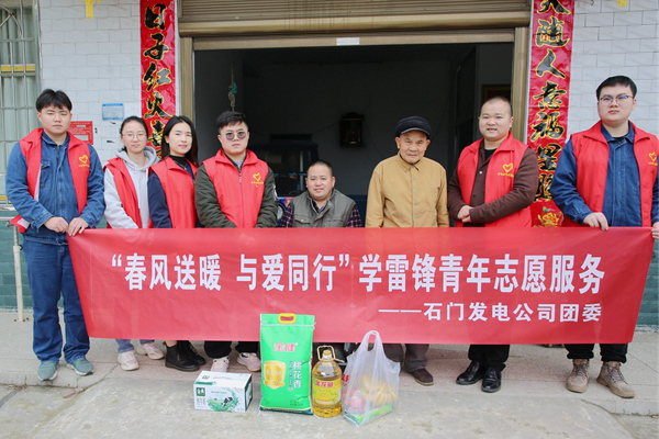 中國電力網(wǎng)訊 草長鶯飛,春風(fēng)送暖,今年3月5日是第59個學(xué)雷鋒紀(jì)念日。當(dāng)天,公司團(tuán)委組織團(tuán)青志愿者開展了“春風(fēng)送暖 與愛同行”學(xué)雷鋒青年志愿服務(wù),前往石門縣城周邊3戶特困戶家,送去慰問物資,傳遞愛心與希望,并鼓勵他們戰(zhàn)勝困難,勇敢生活。